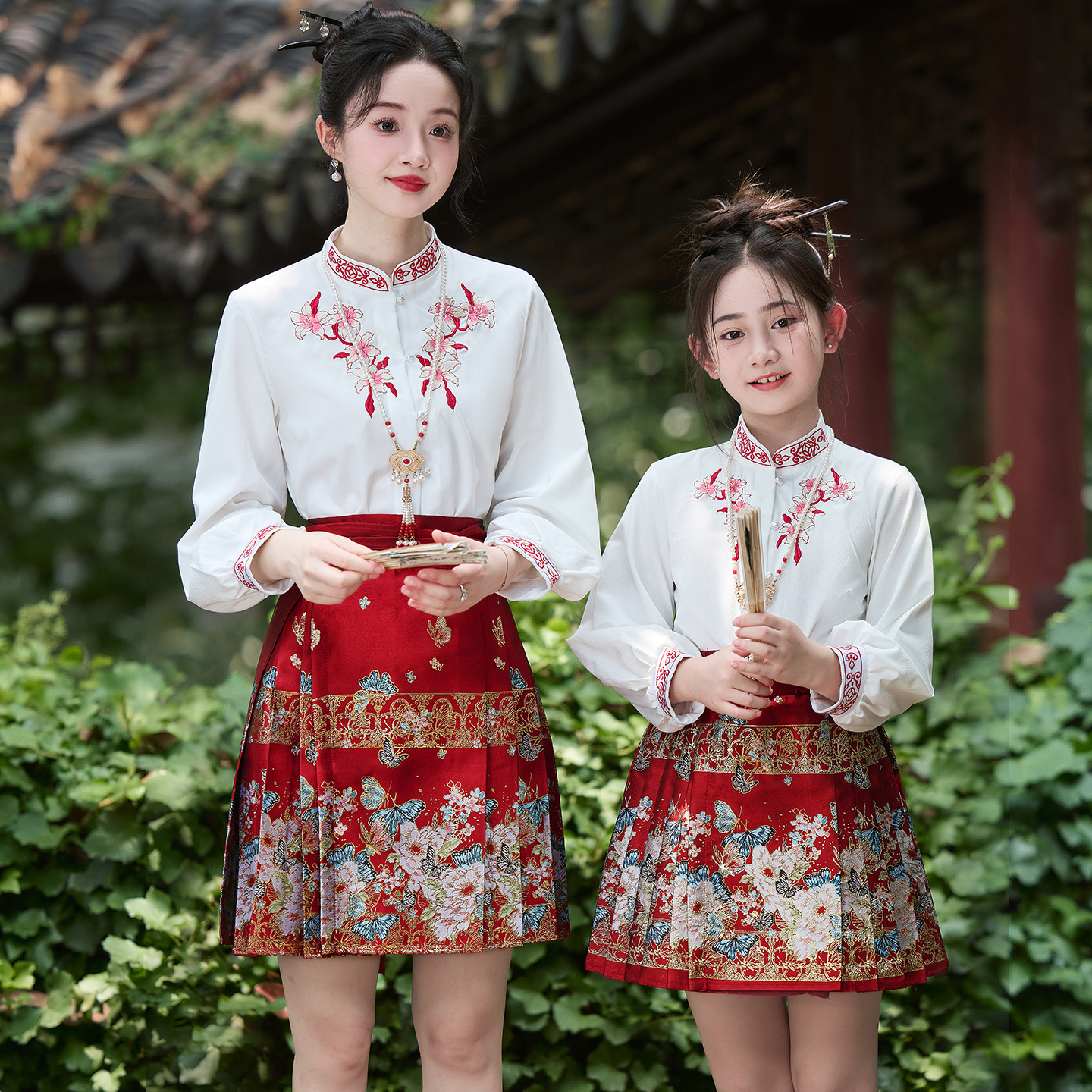 织金马面裙套装 国潮唐装 2025秋装 汉服中大儿童新中式 新款 女童短款