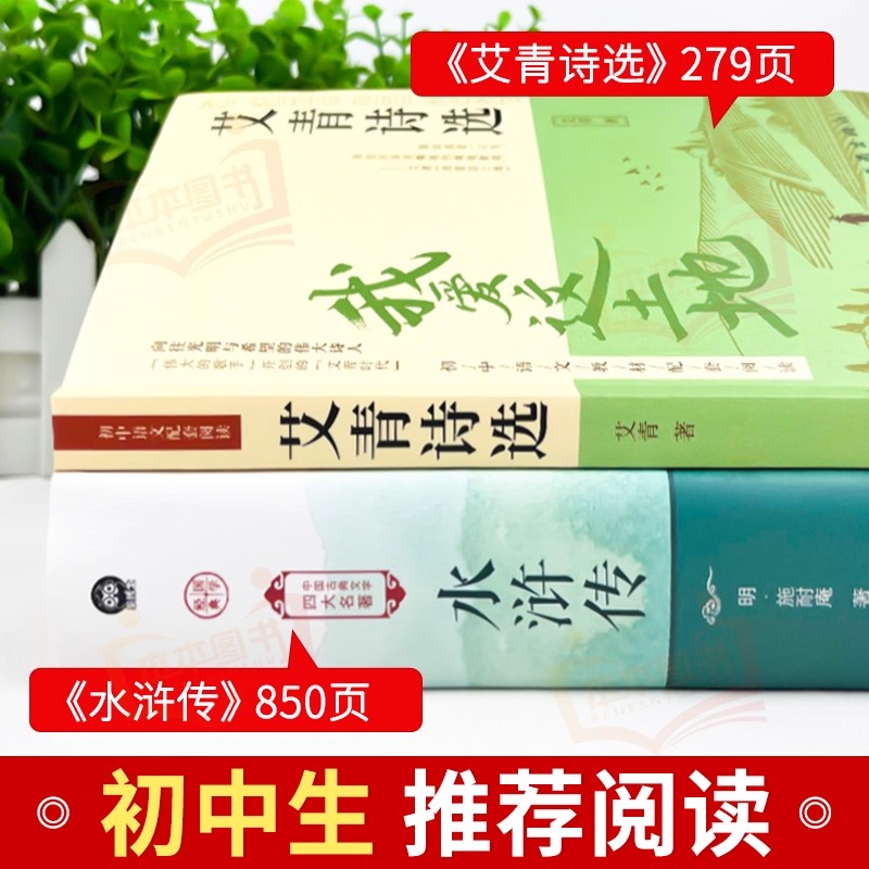 课外书初中生配套人教版 艾青诗选和水浒传原著正版 名著初三上册 九年级课外阅读书籍必读正版 书目简爱唐诗三百首全集诗集 完整版