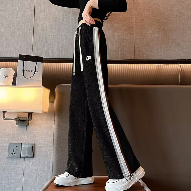 子秋2025新款 加绒阔腿裤 卫裤 初中生女孩大童秋装 儿童运动裤 女童裤