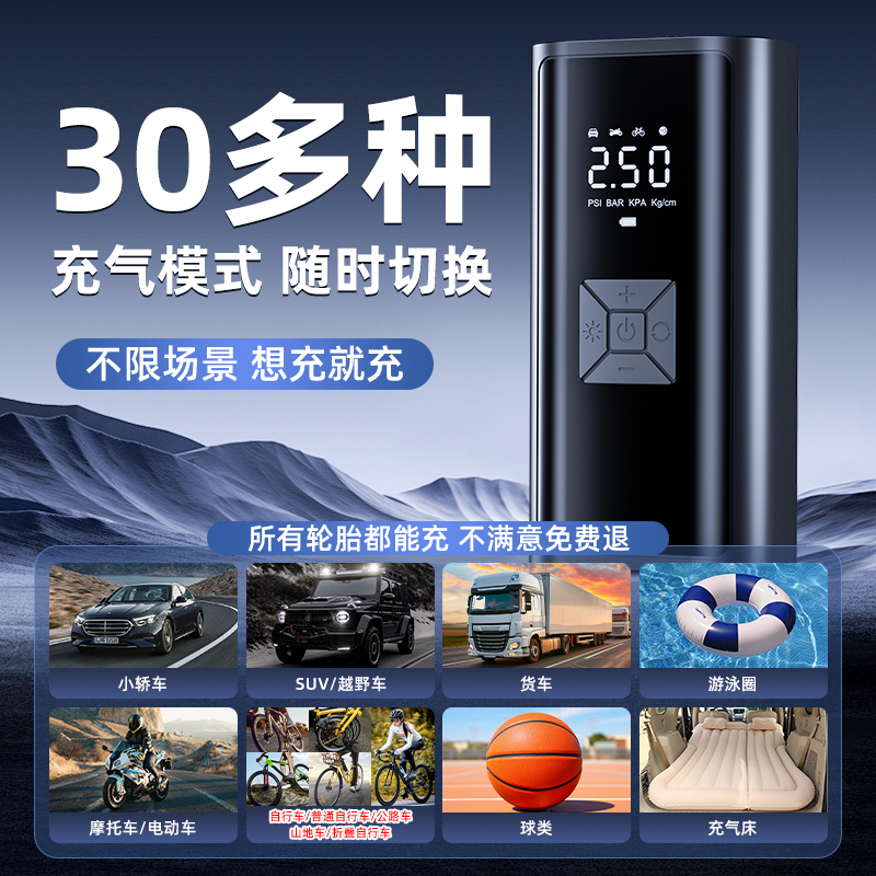 车载无线充气泵车用便携式 汽车用打气泵电动轿车轮胎高压打气筒