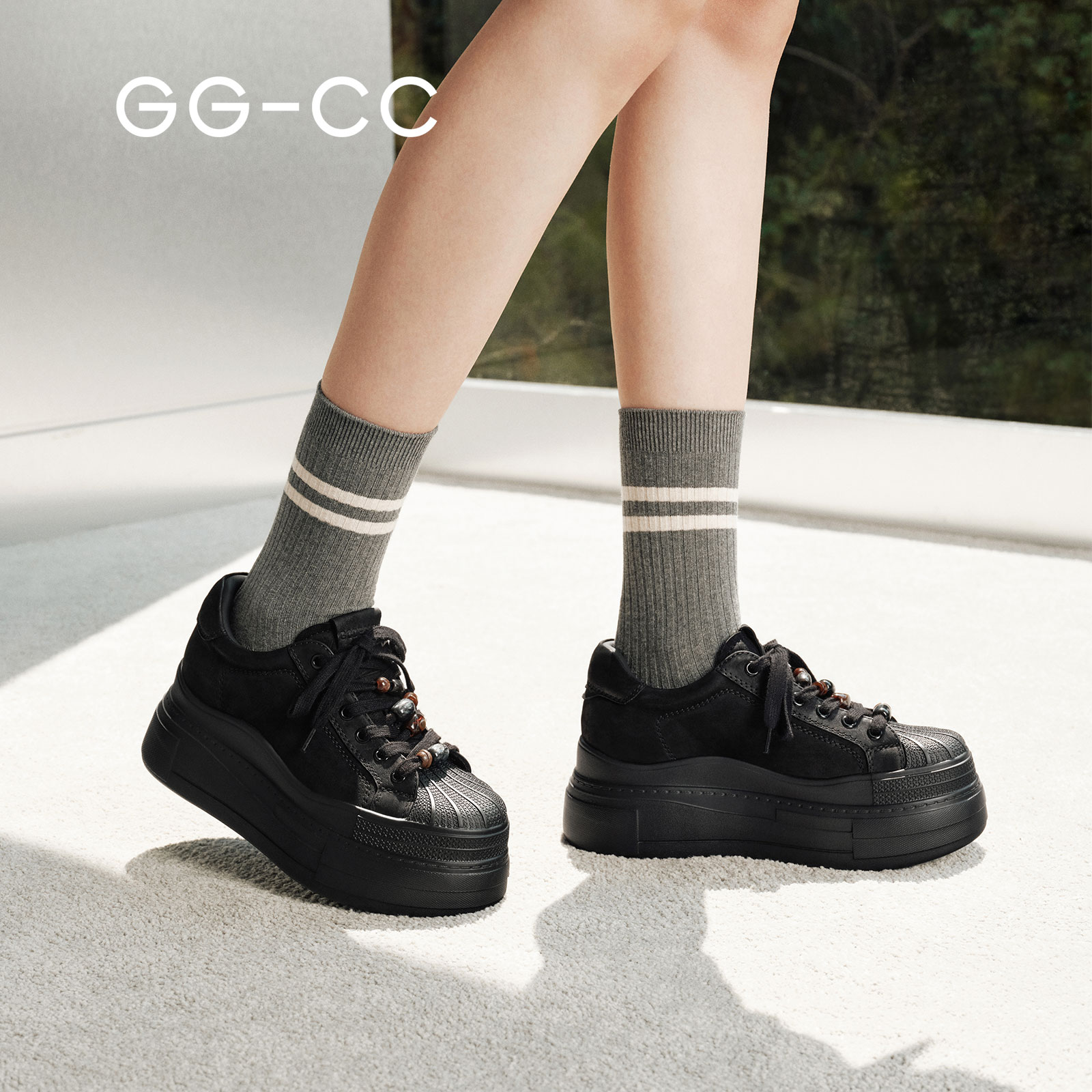 女百搭休闲鞋 GGCC2025秋季 板鞋 贝壳头厚底小白鞋 新款
