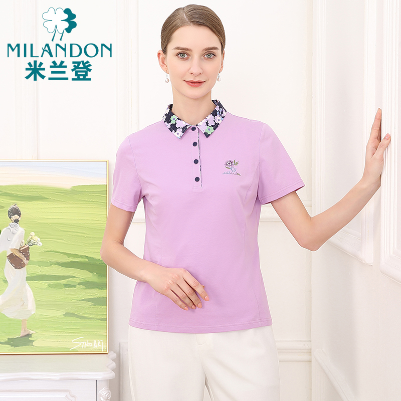 2025年夏季 polo领T恤衫 新款 休闲短袖 女 时尚 米兰登中老年妈妈女装