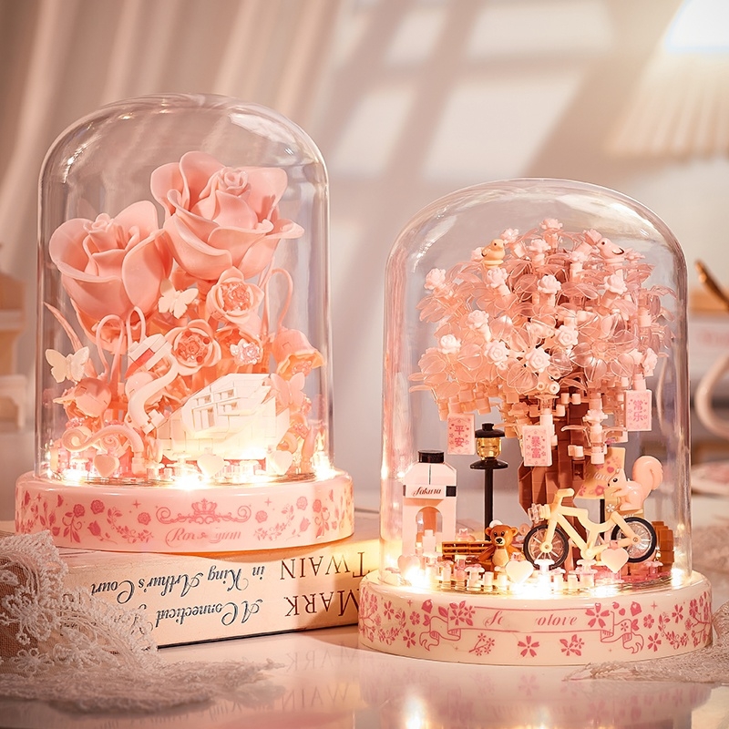 2025新款 玩具送女孩情人节礼物 永生玫瑰花束积木鲜花植物盆栽拼装