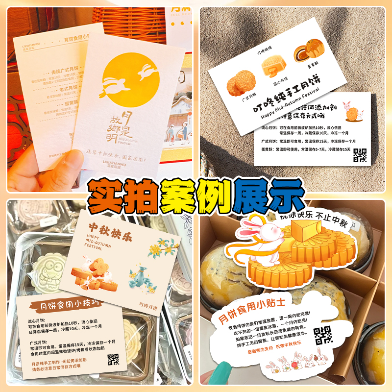 月饼食用卡片定制中秋节日伴手礼盒保存小贴士贺卡烘焙口味介绍标签冷藏售后说明硬卡纸蛋黄酥温馨提示卡印刷