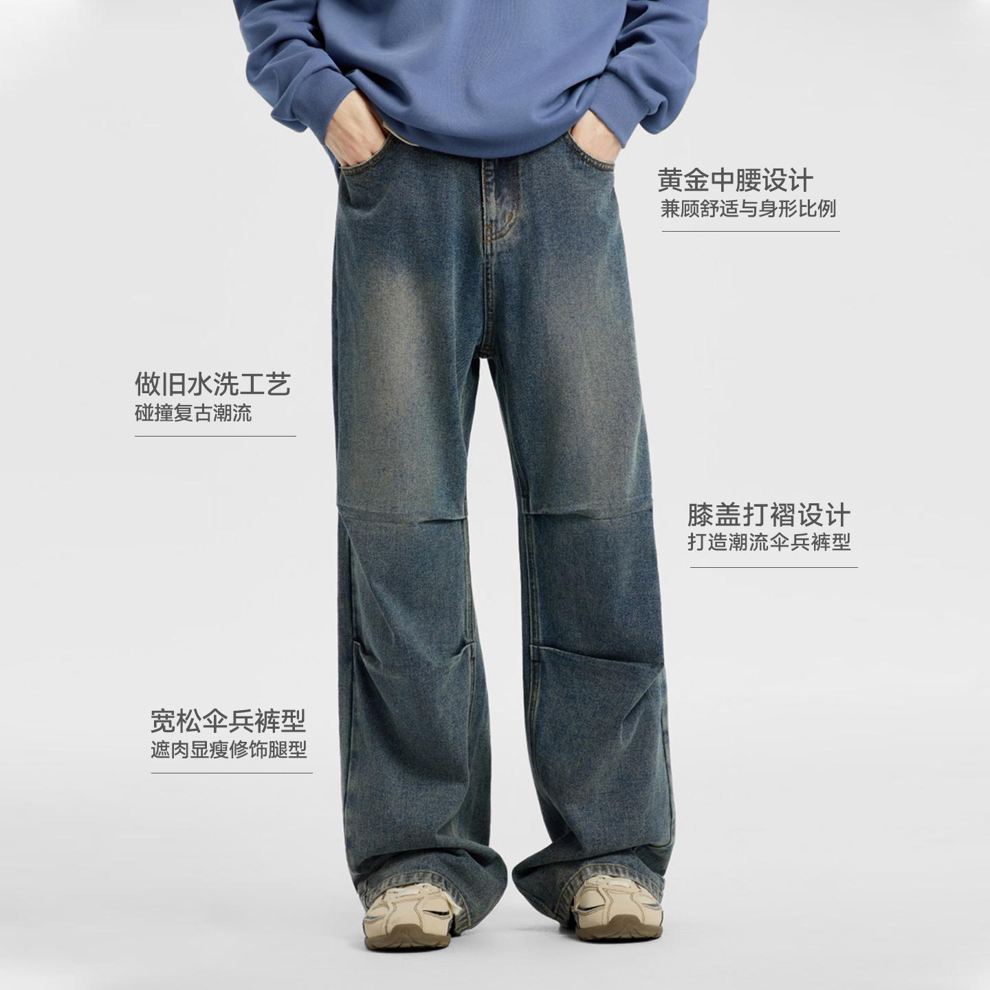 潮流休闲水洗宽松伞兵裤 新款 子男 男2025秋季 美特斯邦威牛仔长裤