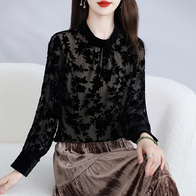 T恤小众别致显瘦外套春秋 桑蚕丝时尚 2025新款 真丝丝绒上衣女长袖