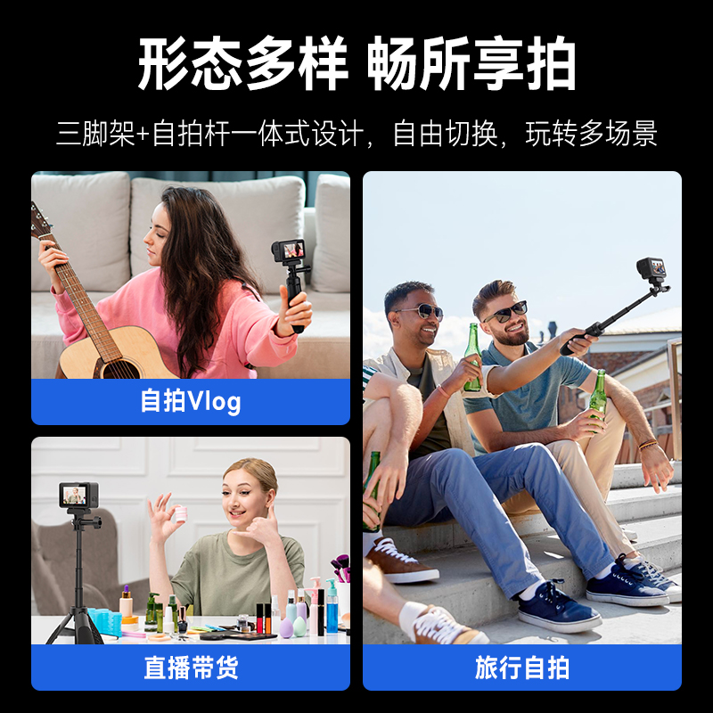 TELESIN泰迅运动相机迷你自拍杆适配大疆action5pro延长杆三脚架