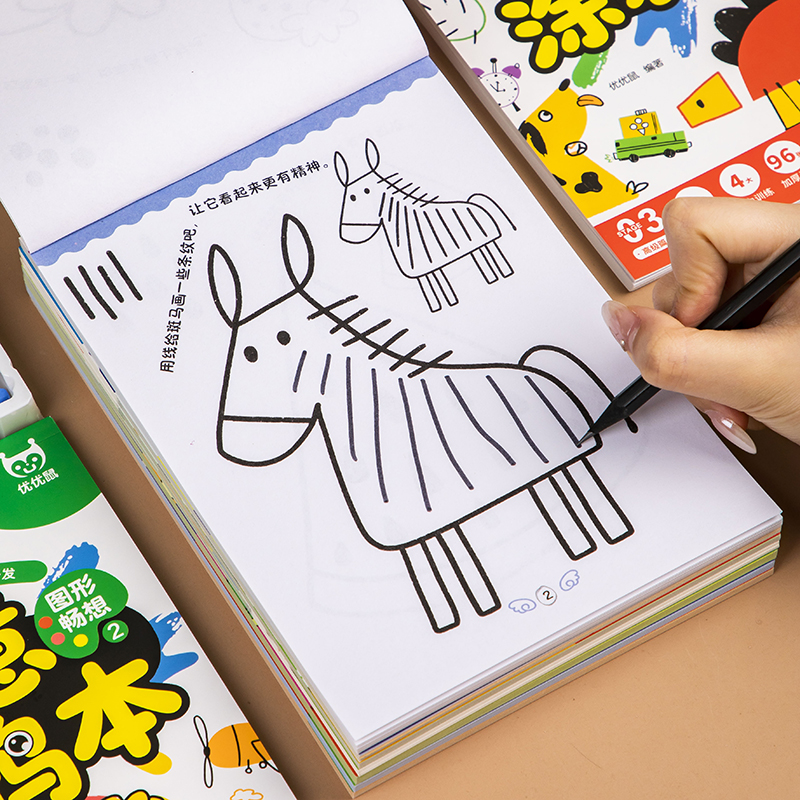 6岁 6岁宝宝简笔画手绘涂色本幼儿儿童3册艺术启蒙美术绘画练习入门幼儿园涂色本零基础学画启蒙教材书适合2 创意涂鸦本 画画本3