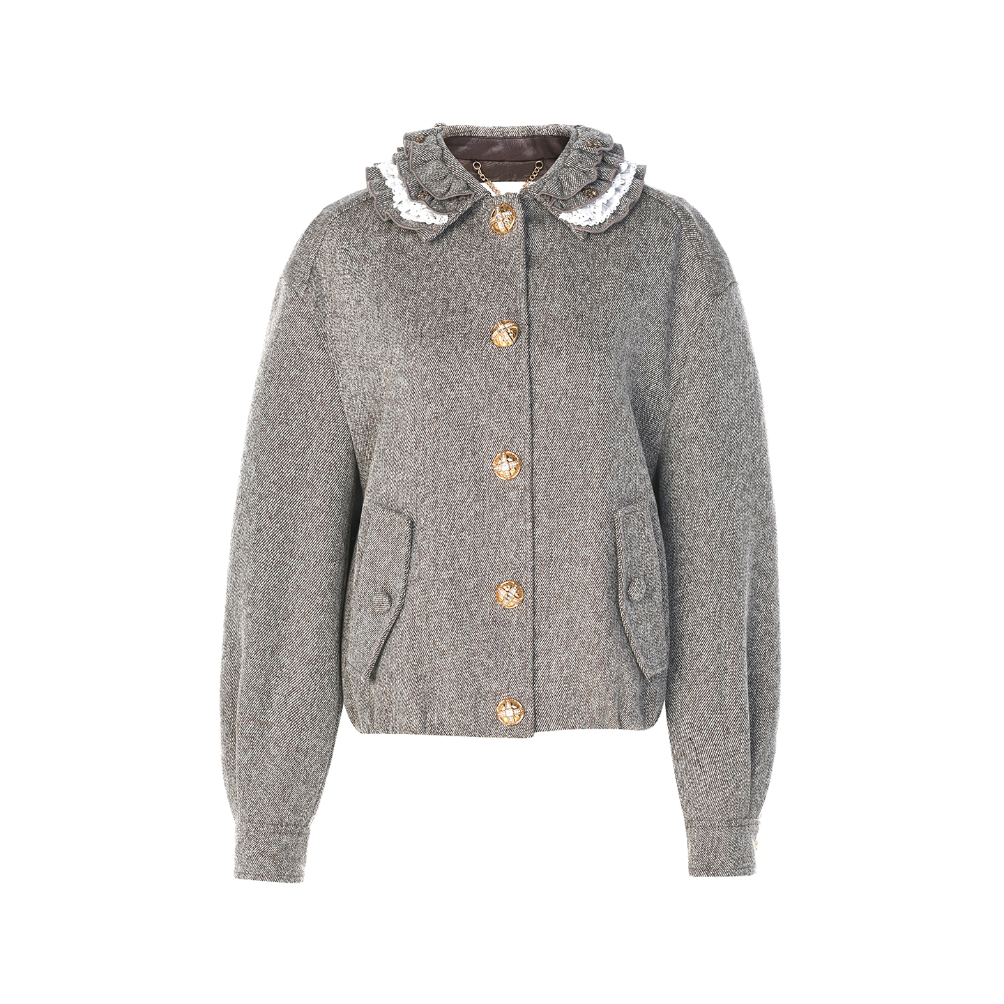 绵羊毛荷叶领装 时尚 饰花呢棒球服外套女 新款 lefame拉飞姆2025秋季