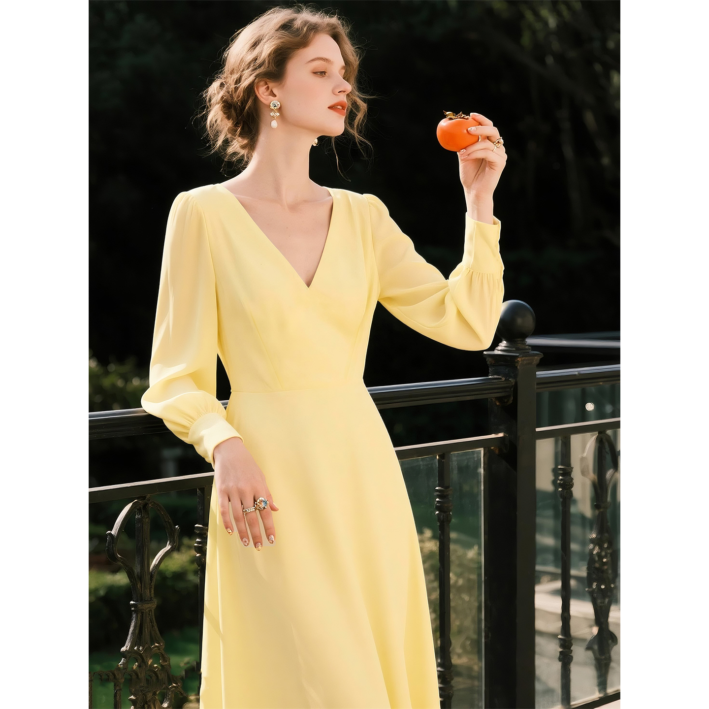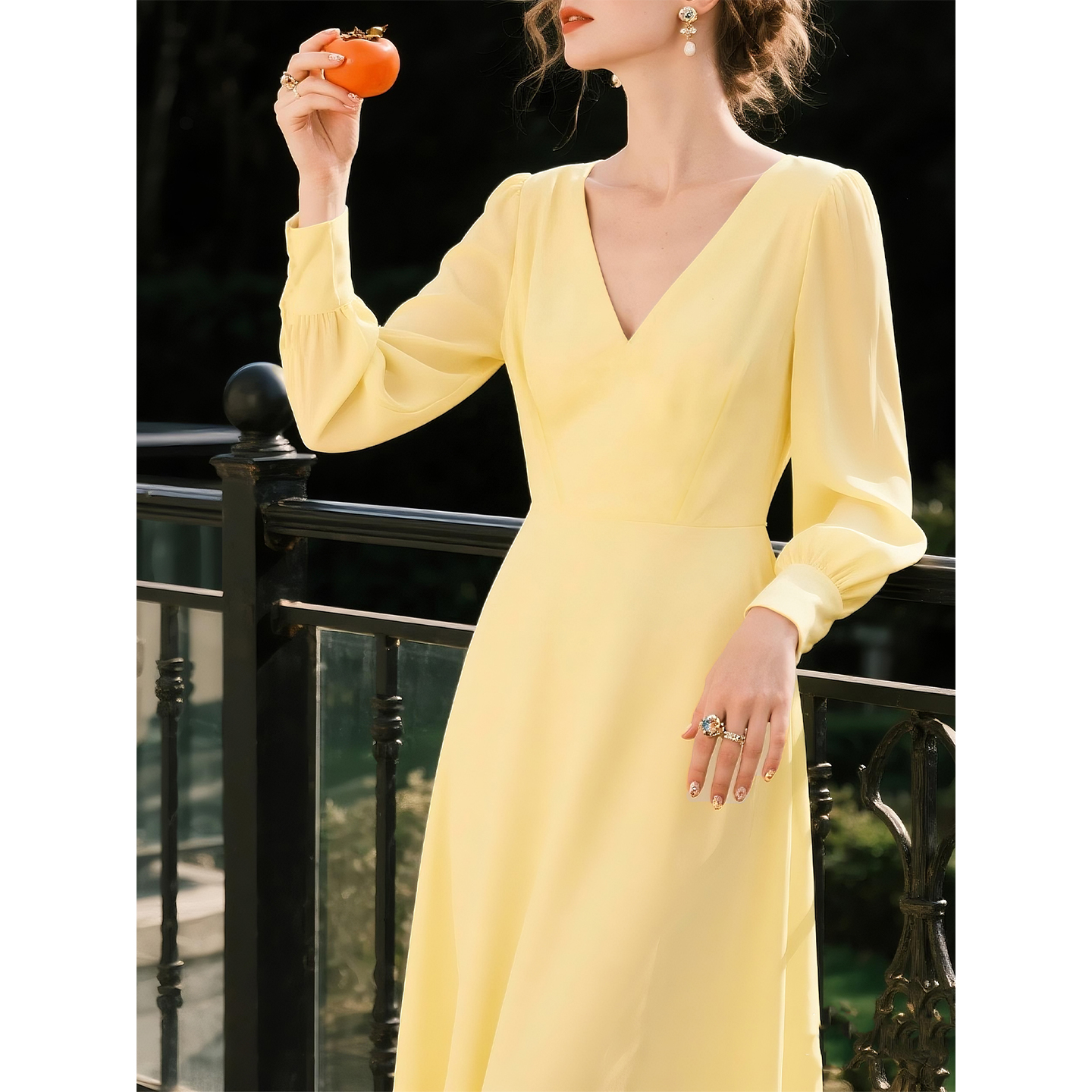 正式 2025春秋轻熟V领时尚 连衣裙复古法式 显瘦长袖 场合礼服裙 修身
