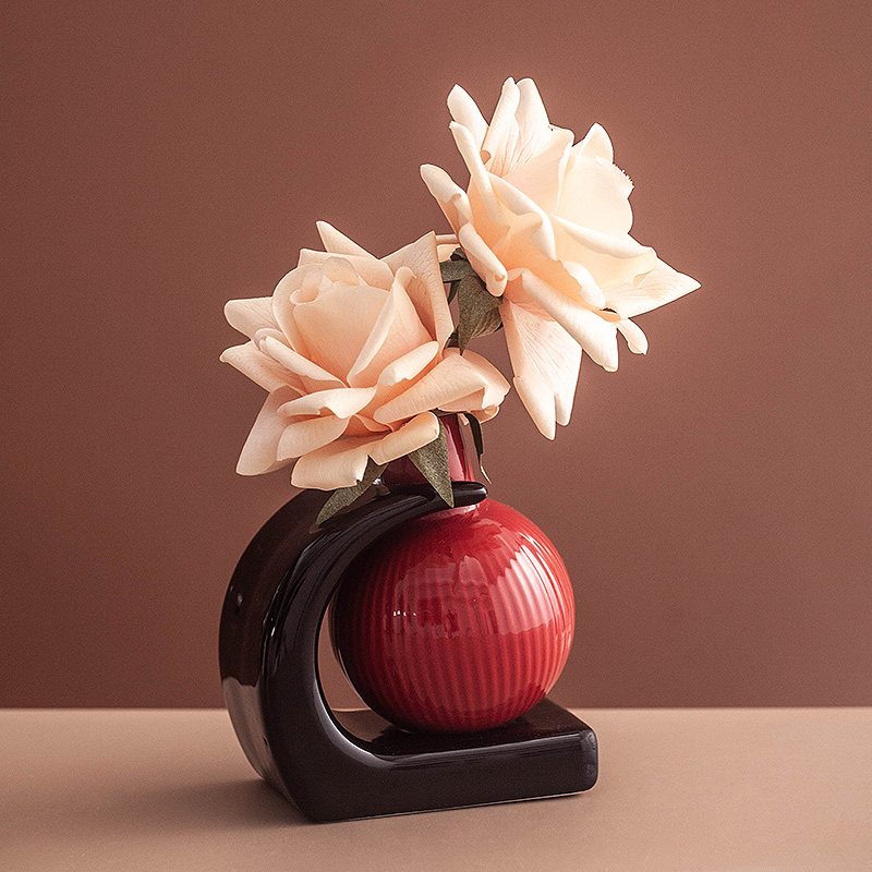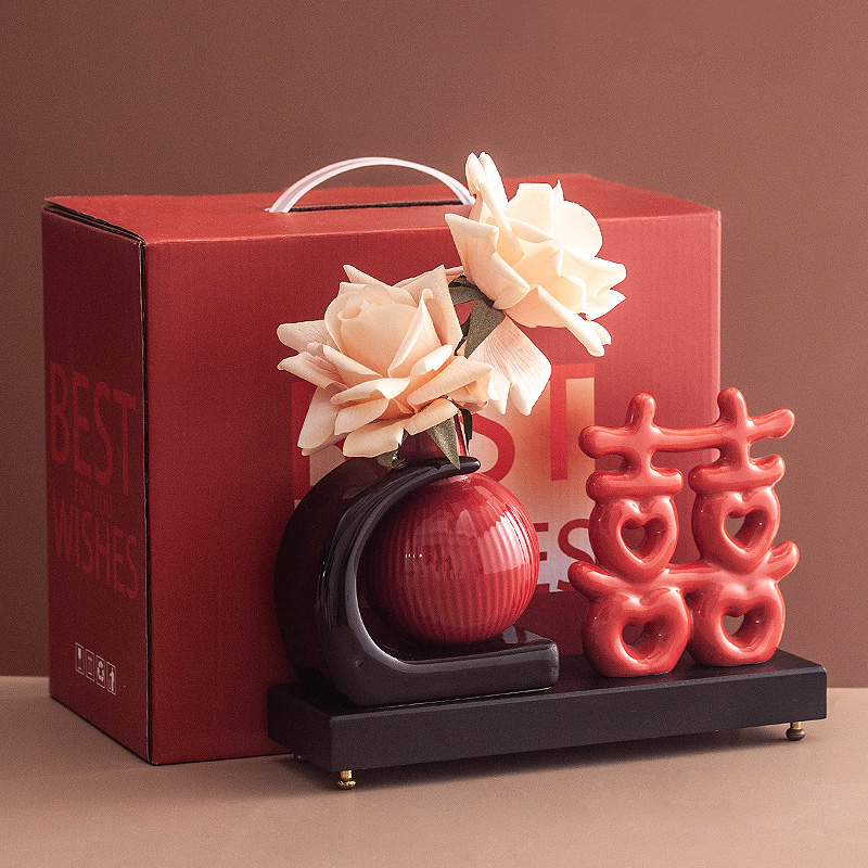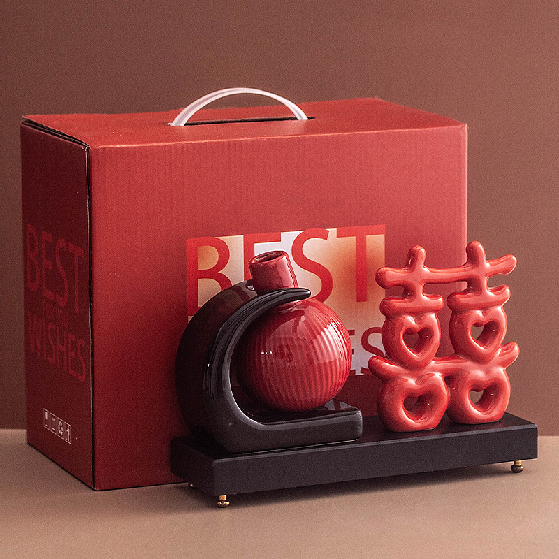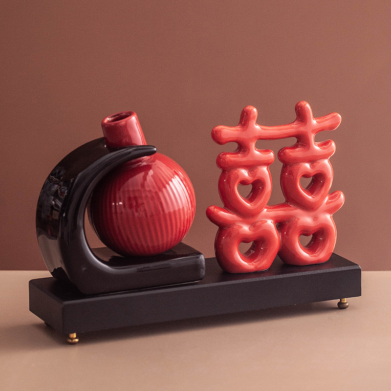 红色喜庆双喜花瓶客厅桌面摆件新婚婚房床头柜婚庆场景布置装 饰品
