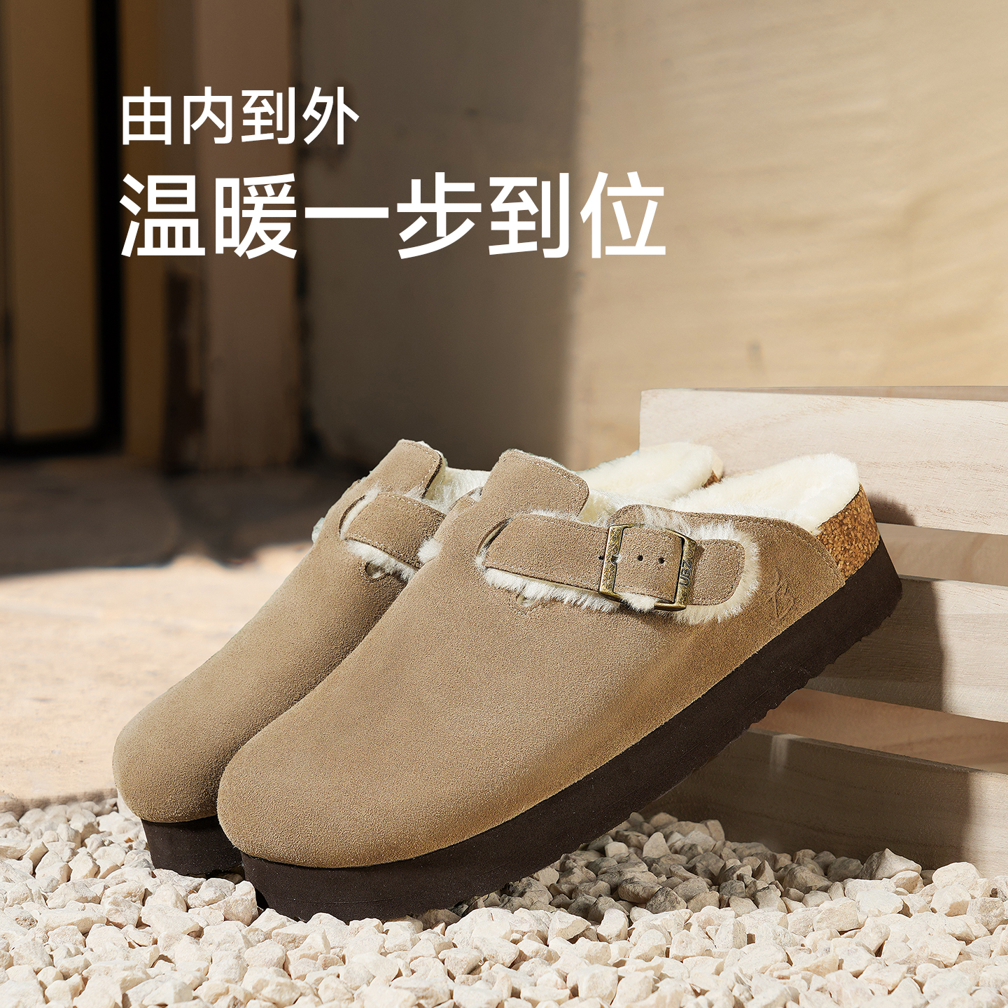 加厚保暖毛毛棉拖鞋 UBZ 2025年秋冬新款 男士 防水加绒厚底勃肯拖鞋
