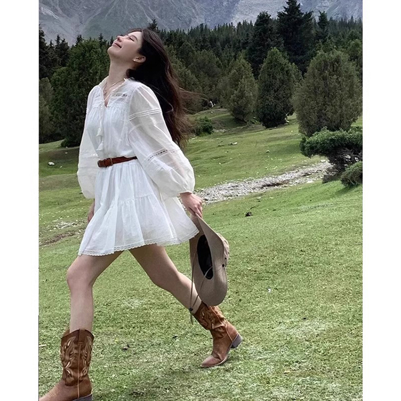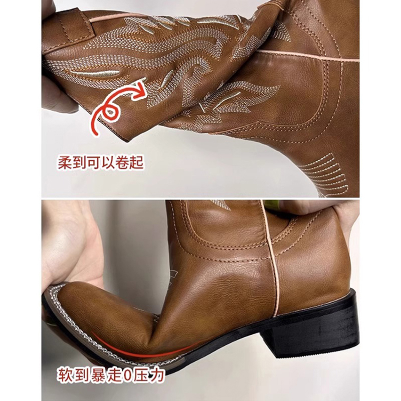 沙漠靴靴子鞋 靴鞋 子中筒中跟休闲 2025新款 何穗刺绣西部牛仔靴女款