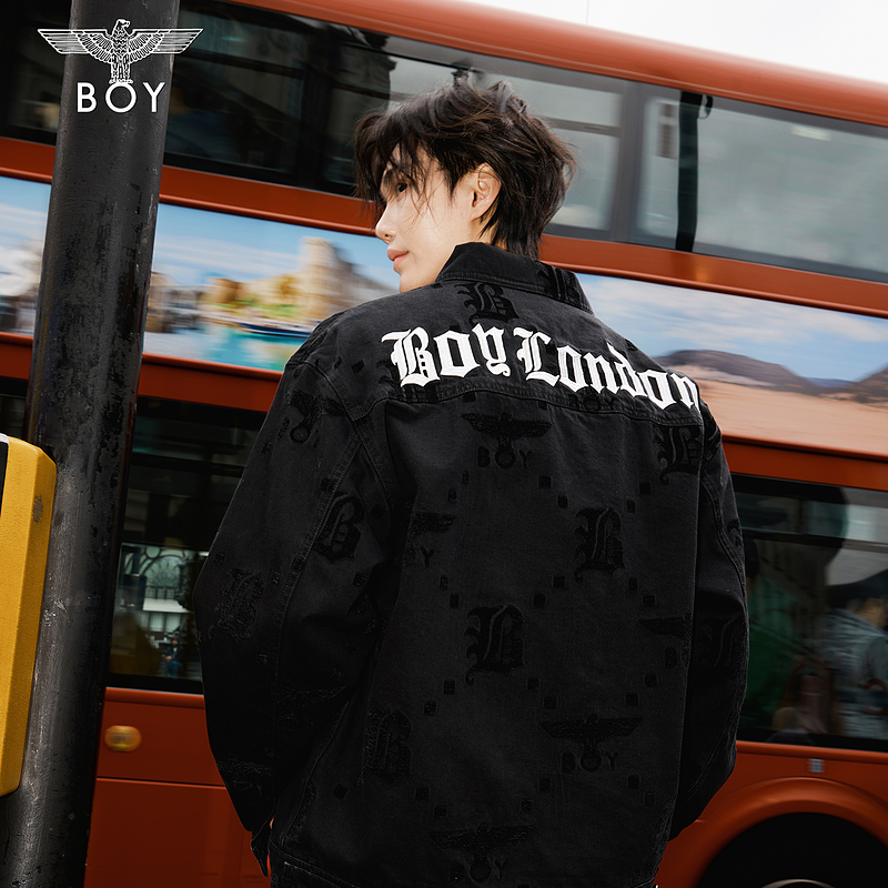新款 BOYLONDON2025秋季 刺绣翻领水洗牛仔外套N50008 暗纹羽迹