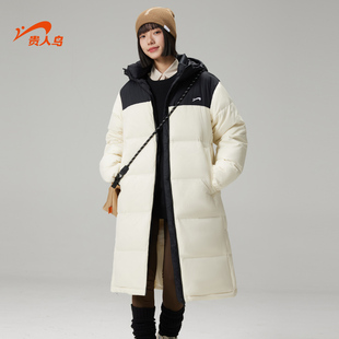 棉服官方保暖上衣连帽运动外套 鸭绒长款 李宁火锅羽绒服 女冬季