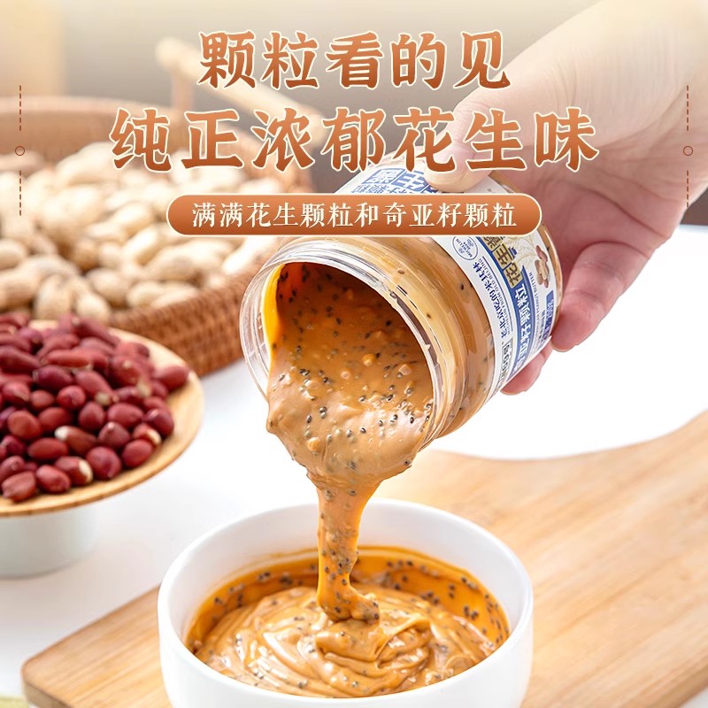 方砖厂69号花生酱奇亚籽颗粒海盐味无糖精拌面抹面包高蛋白芝麻酱