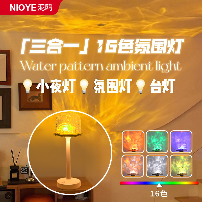 水波纹极光星空顶投影灯氛围感情调灯卧室床头小夜灯房间浪漫礼物