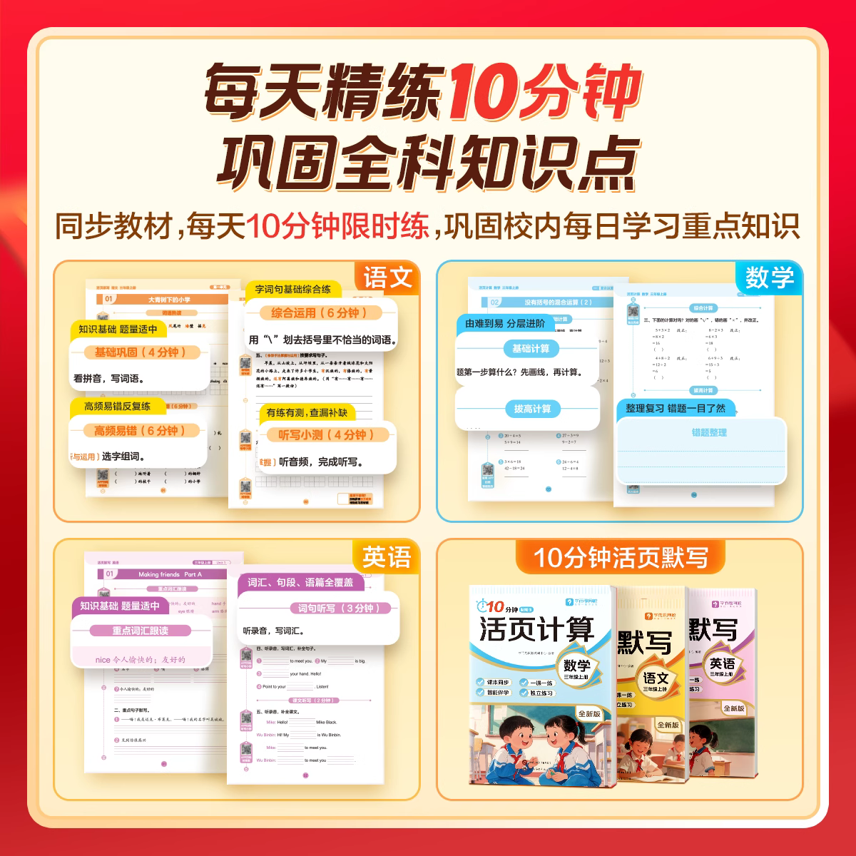 学而思10分钟活页上册语文数学英语计算默写小学1 6年级数学方法精讲语文校内同步课文英语外教原声音频全科知识练习测试