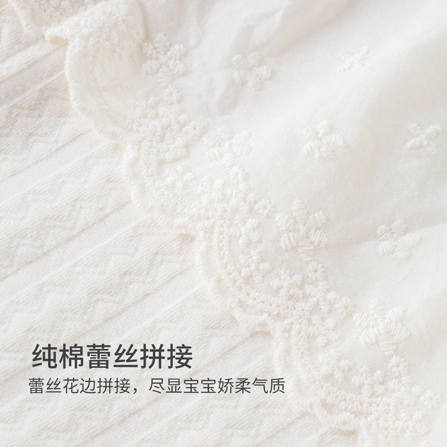 婴儿连体衣秋冬季 哈衣提花家居服爬服 甜美蕾丝花边女宝宝对开长袖