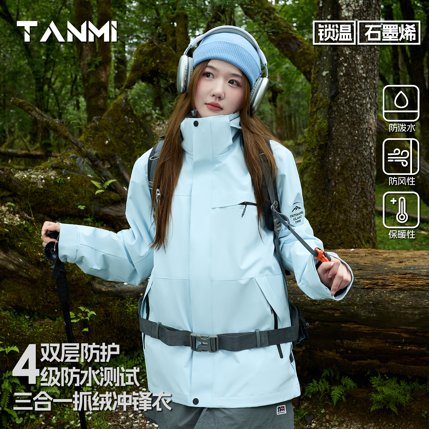 防水外套 拓路者户外抓绒内胆三合一男女款 明星同款 朱雀冲锋衣