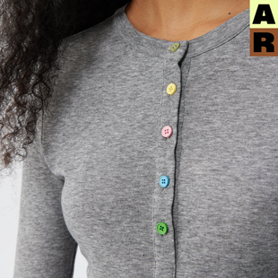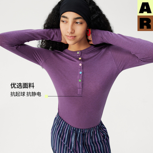 AR彩扣天丝羊毛长袖 肌底衣亨利领打底T恤内搭上衣女AlmondRocks