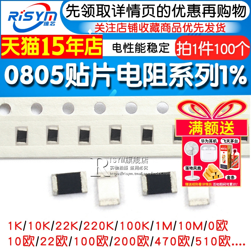10K 100K2.2K4.7K22欧姆20K22K47欧0欧3 件1% 0805贴片电阻器元