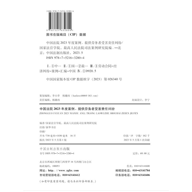 中国法制出版 中国法院2023年度案例11 法院审理案例律师办案实务 国家法官学院 社9787521632804 提供劳务者受害责任纠纷