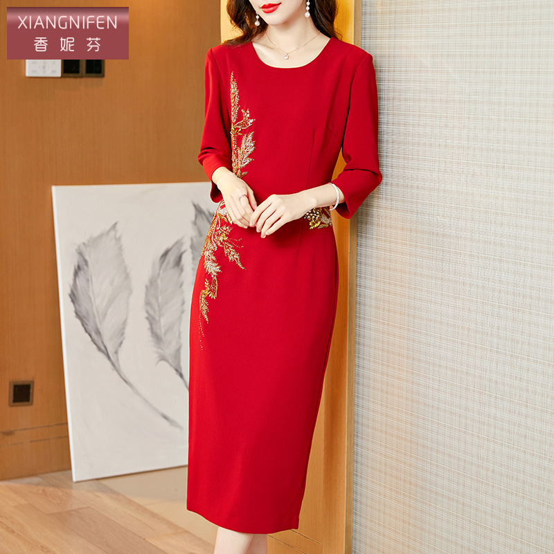 名媛小香风高端精致收腰显瘦A字裙 丝绒连衣裙女秋季 法式 复古长袖