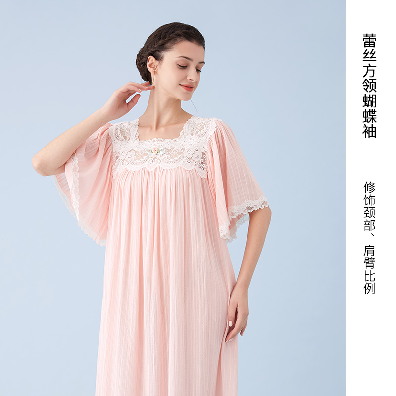 幸棉法式 睡裙女秋超仙睡衣家居服露背高级感连衣裙宽松长裙子 长袖