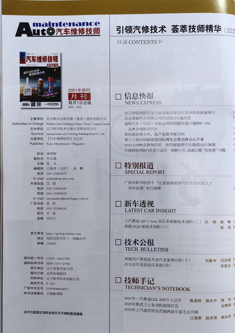 正版 2022奔驰EQA3004MATIC充电系统故障一汽奥迪汽车维修专业丛书 汽车维修技师杂志2022年12月刊267期