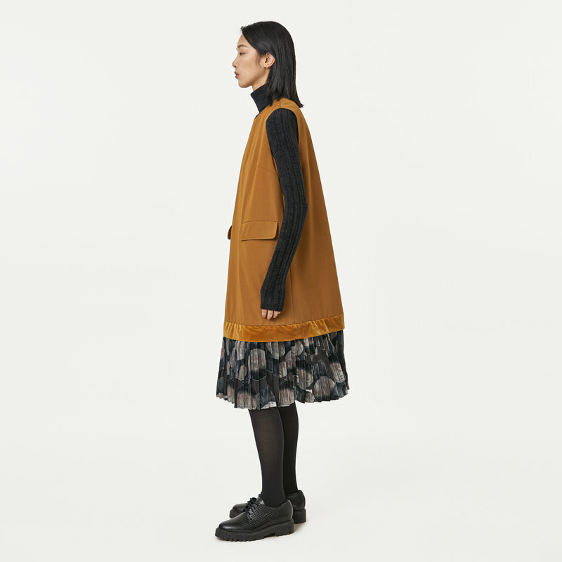 撞色拼接设计师无袖 新款 MOVEUP幻走2021冬季 连衣裙 商场同款