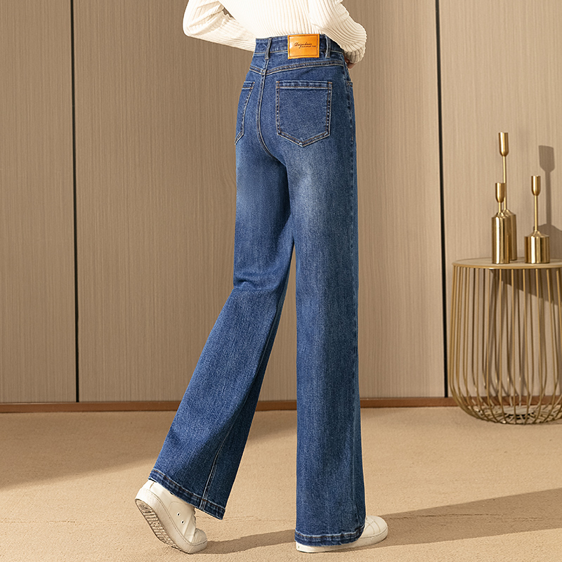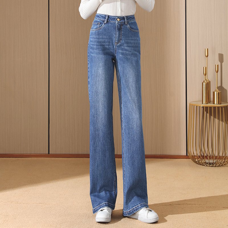 新款 女春秋季 高腰显瘦复古垂感直筒裤 大码 窄版 拖地长裤 阔腿牛仔裤