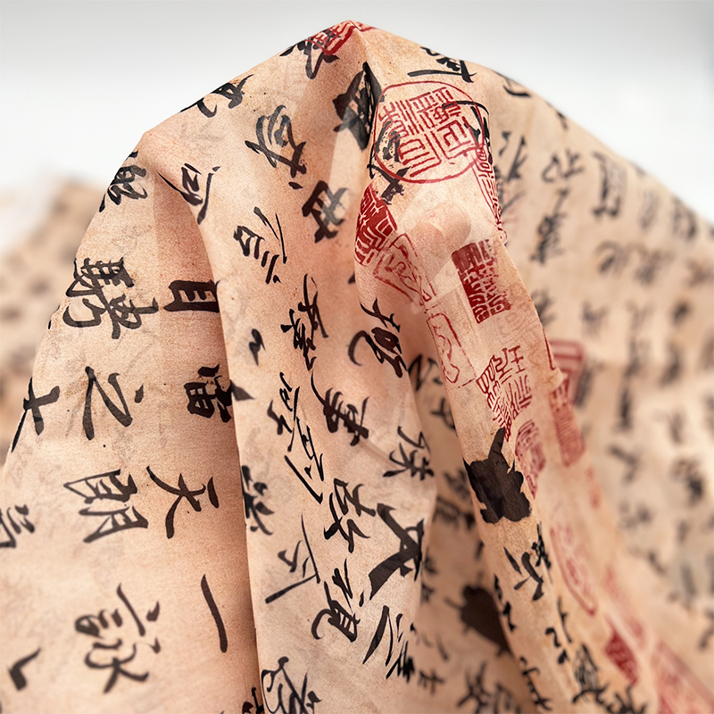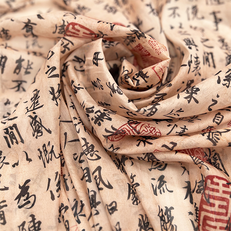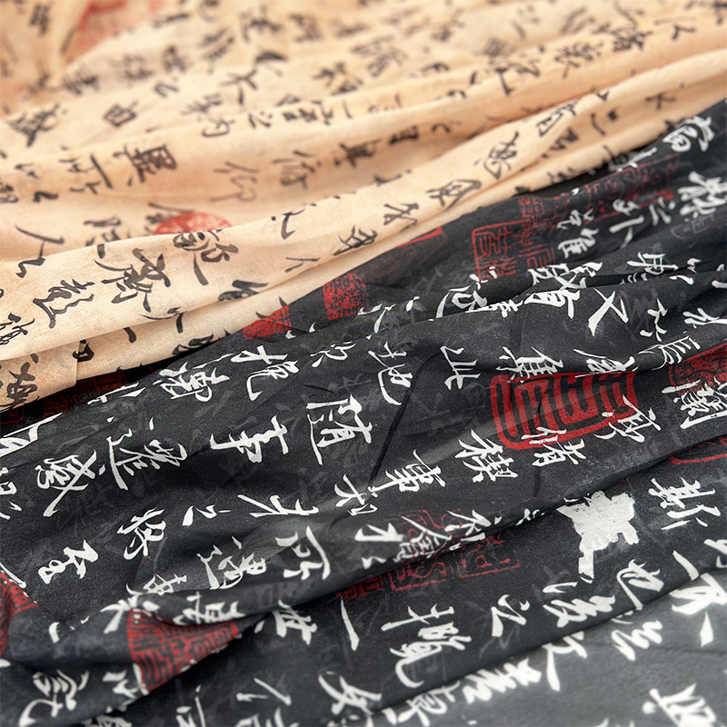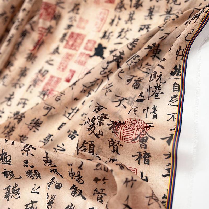 面料diy钻石纱 裙料服装 兰亭序国风新中式 文字书法纱布料披肩开衫