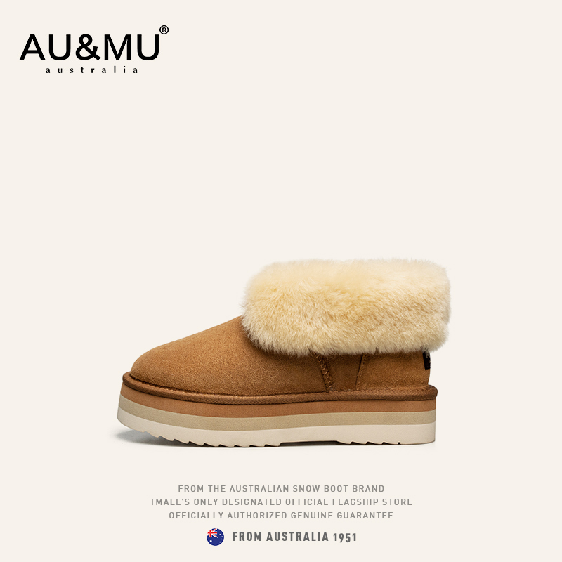 翻毛厚底防滑户外迷你短筒雪地靴女皮毛一体 时尚 AUMU2025冬季 新品