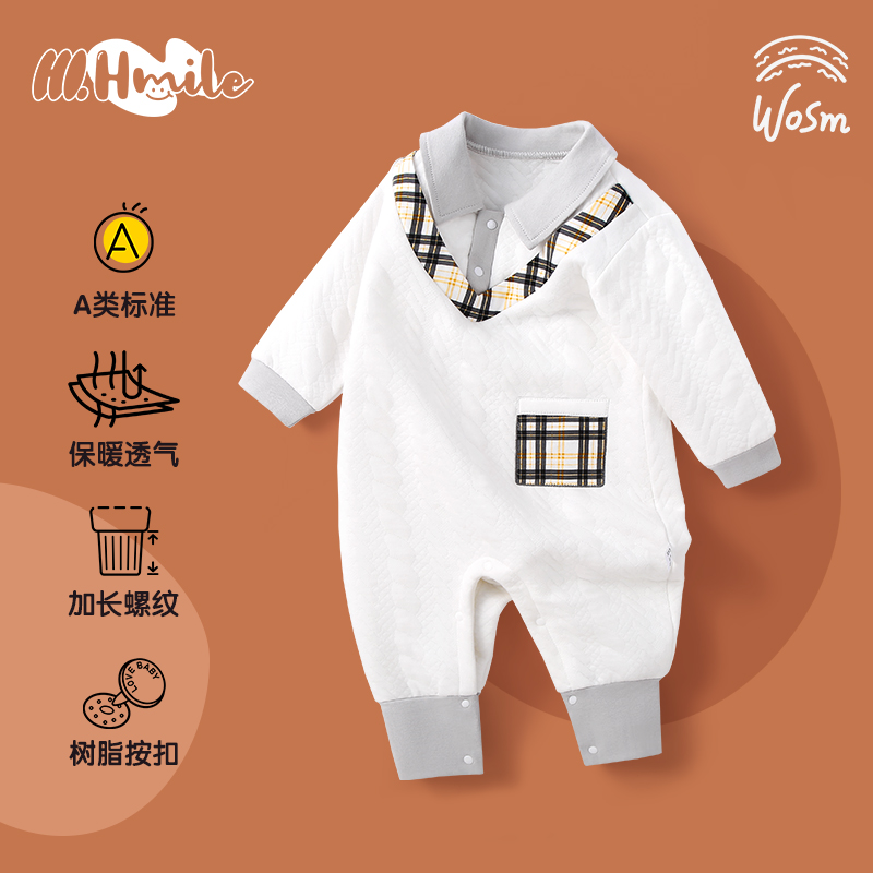 宝宝连体衣秋冬夹棉婴儿秋装 保暖哈衣爬服睡衣 外出衣服新生儿冬装
