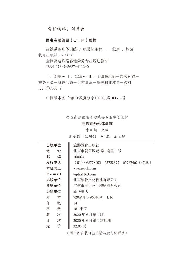 高铁乘务形体训练配有视频资源主编康思超9787563741120 全国高速铁路客运乘务专业规划教材2020年出版