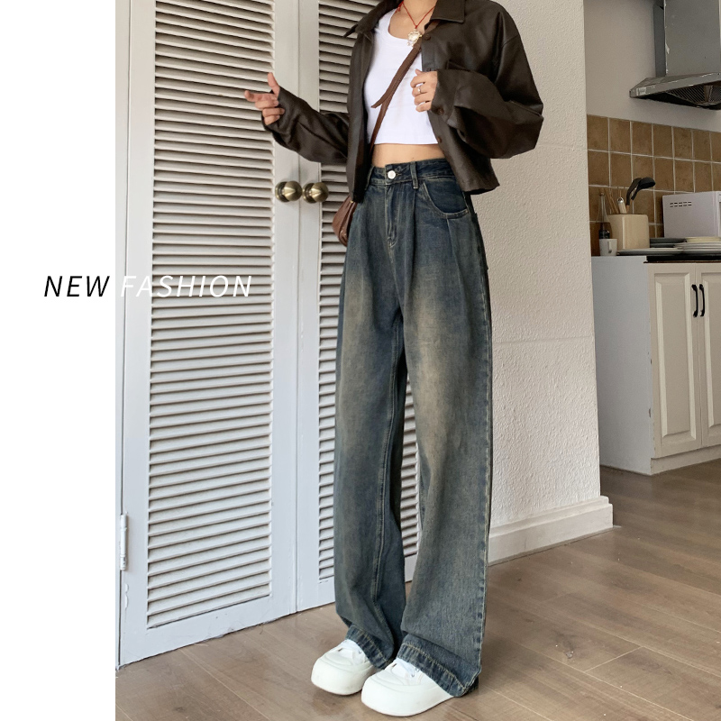 高腰小个子复古宽松直筒裤 2025薄款 子 女夏季 水泥灰垂感阔腿牛仔裤