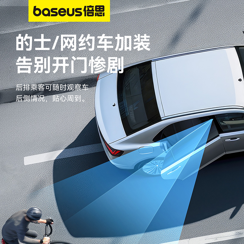 倍思汽车后排后视镜小圆镜下车广角盲点观察镜二排辅助破窗安全锤