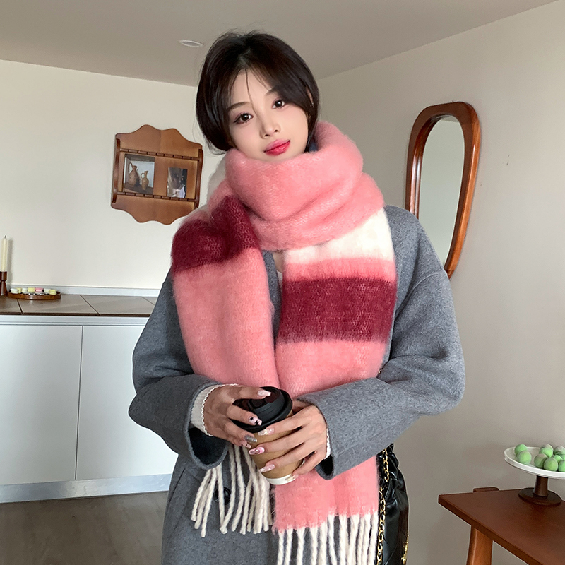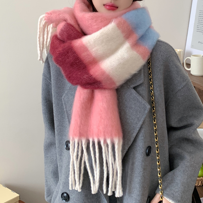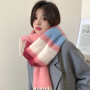 粉色围巾女冬季 高级感毛绒茸保暖围脖彩色秋冬女生大披肩 2025新款