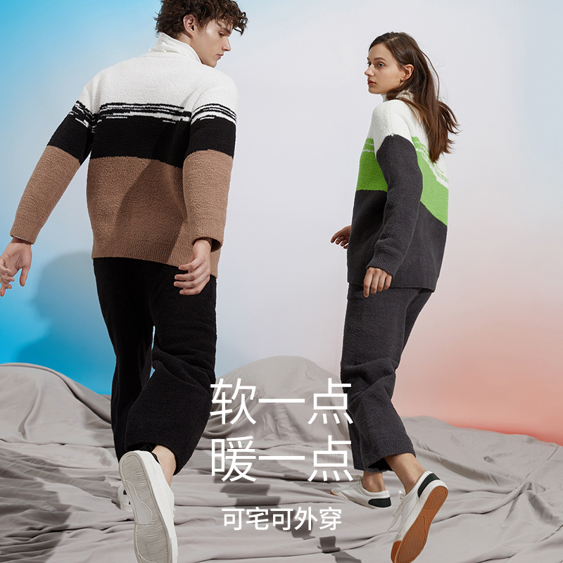 珊瑚绒加厚款 半边绒情侣睡衣女冬季 家居服男可外穿 软绵绵 淳度