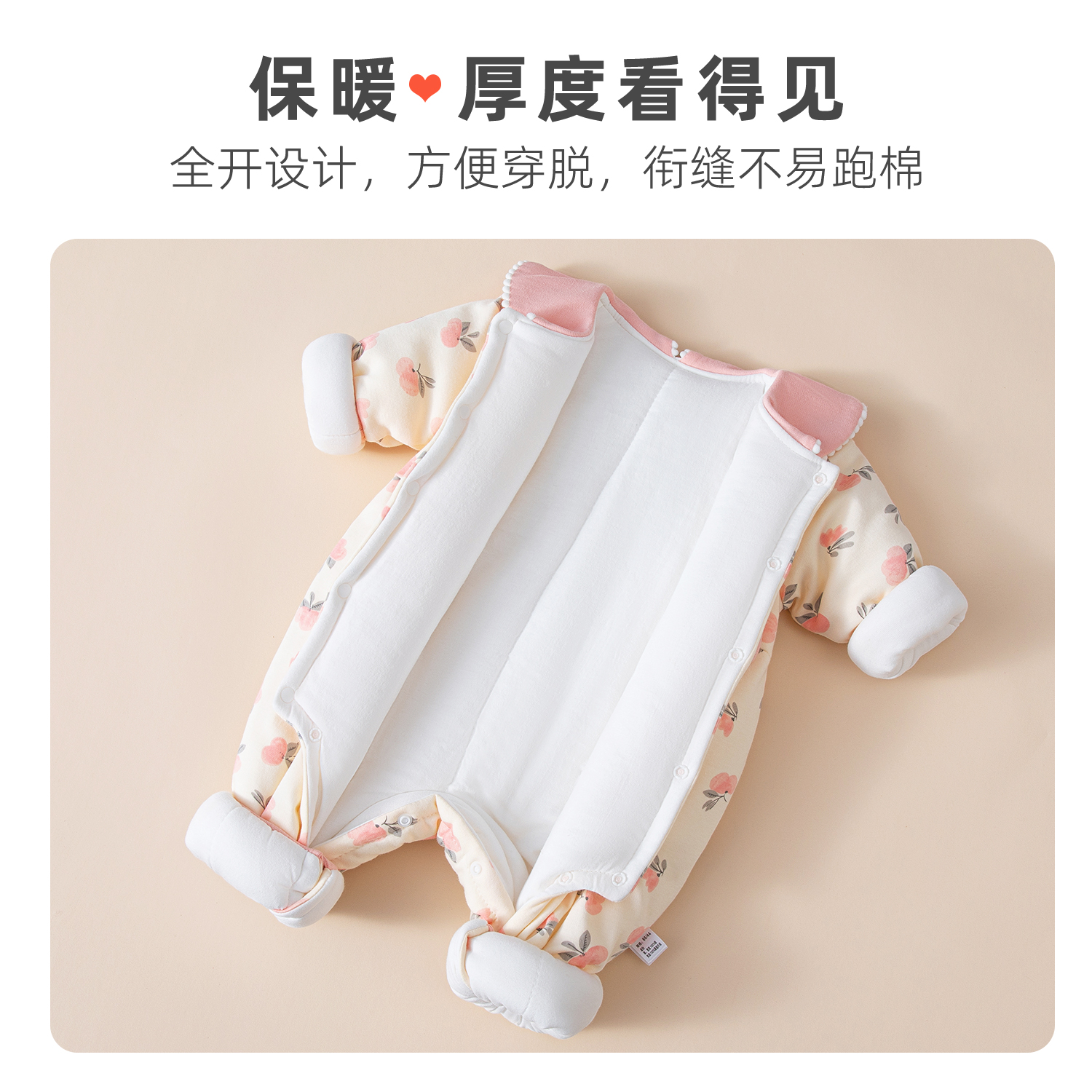 夹棉婴儿连体衣春装 哈衣爬服婴幼儿开春外出衣服 女宝宝薄棉春秋款