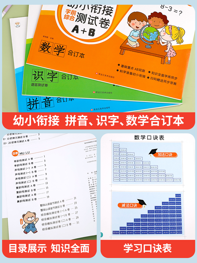 幼小衔接试卷测试卷学前数学拼音识字教材综合全套试卷一日一练思维训练幼儿园中班大班学前班幼升小学一年级衔接练习试卷测试卷