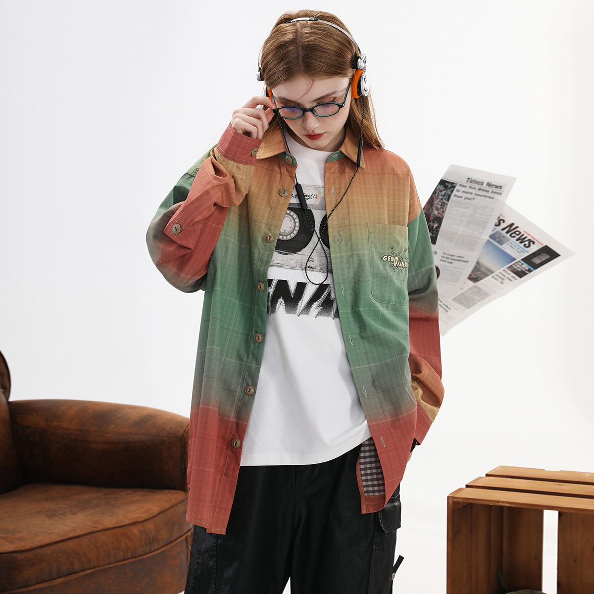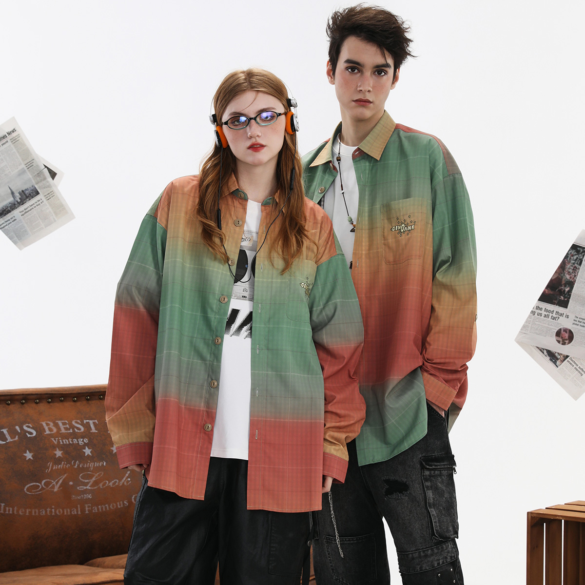 千叶提花渐变色防水防静电长袖 衬衫 衬衣男 新品 GENANX闪电潮牌春季