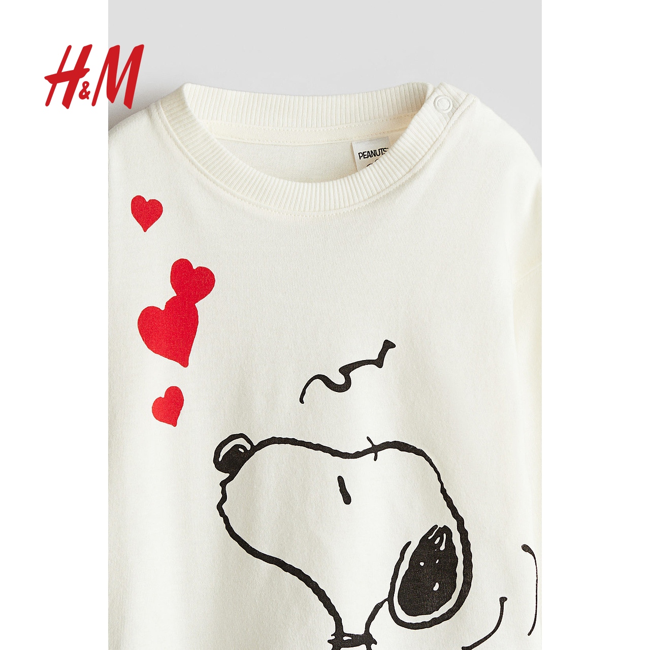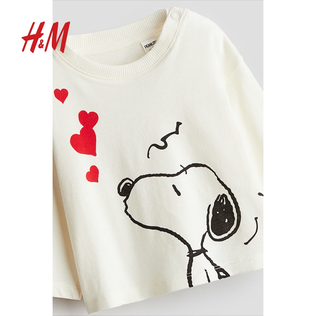 长袖 男婴女婴T恤2025秋新款 HM童装 打底棉质上衣1265918 史努比