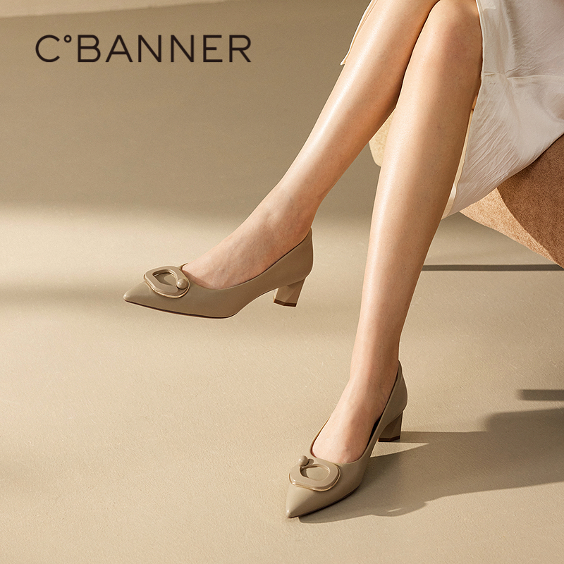 静音系列 2025春秋新款 千百度粗跟法式 女款 通勤高跟鞋 浅口单鞋
