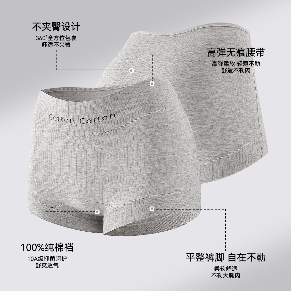 三朵棉内裤 女士纯棉10A抑菌全棉裆中腰透气吸汗亲肤运动平角短裤