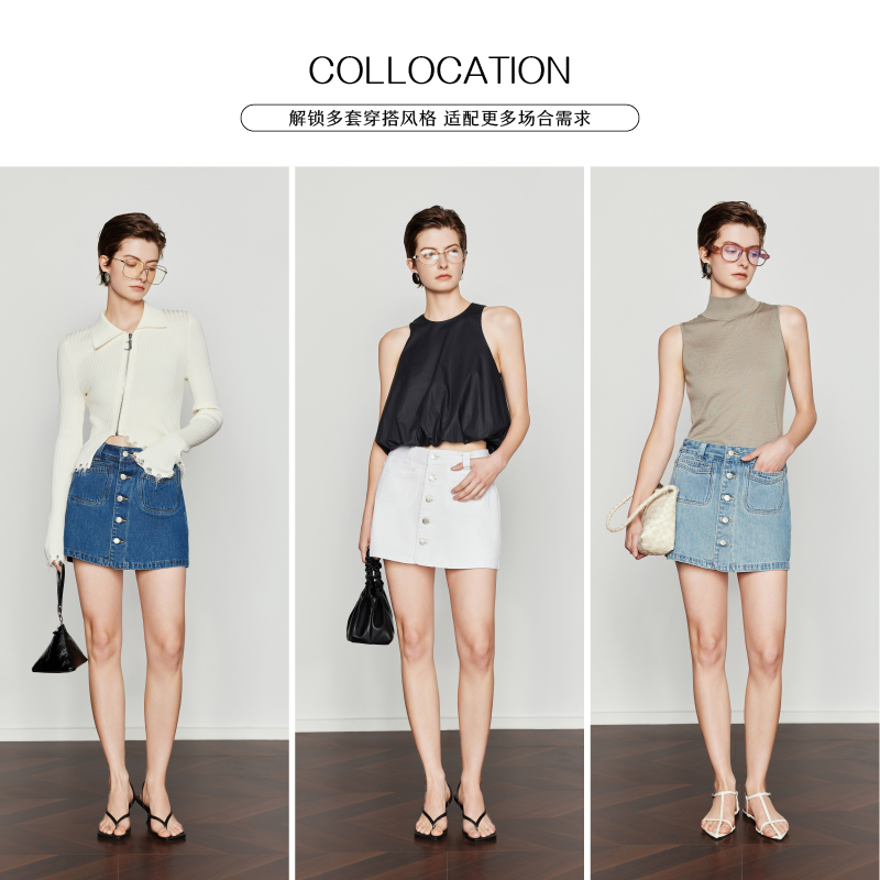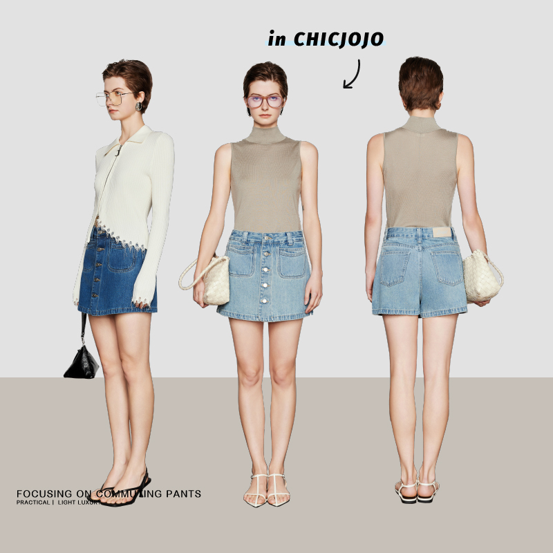 夏浅蓝时尚 女2025新款 CHICJOJO牛仔短裤 气质休闲裙裤 叛逆复兴