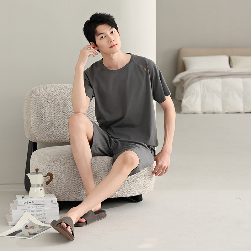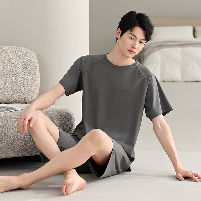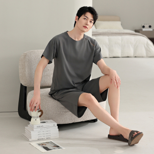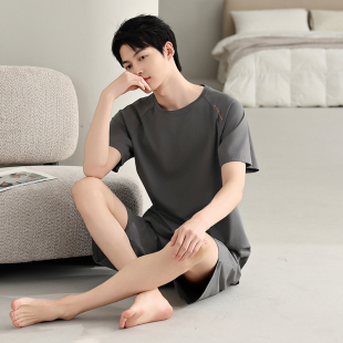 短裤 套头短袖 纯色男两件套纯棉2025可外穿家居服 大码 圆人睡衣夏季