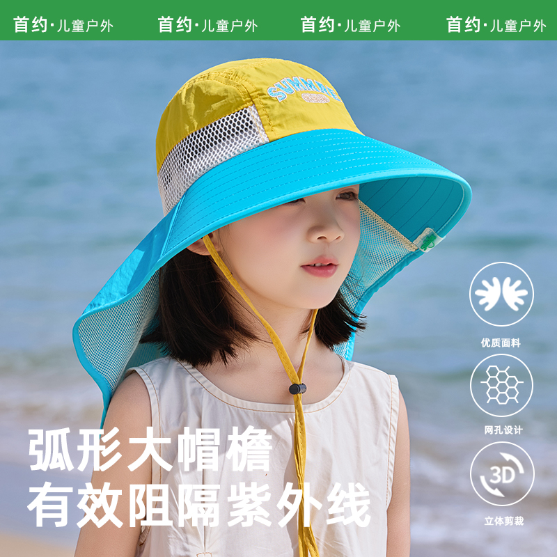 防晒帽女夏季 防紫外线贝壳遮阳帽空顶太阳帽子大檐夏天儿童可折叠