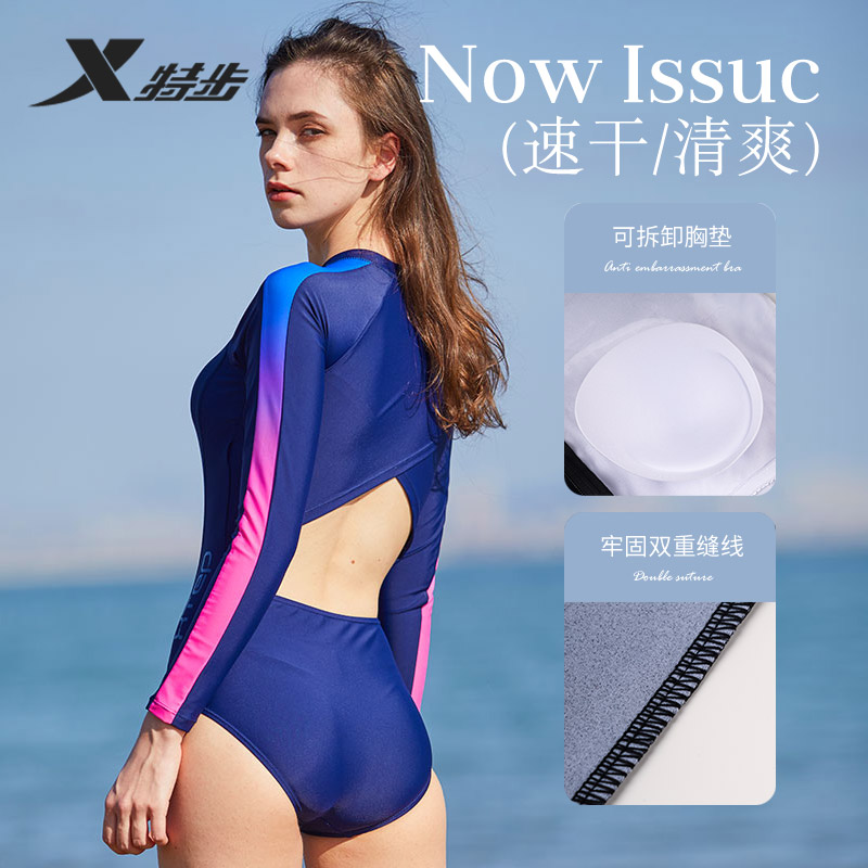 鸿星尔克泳衣女新款 连体保守平角遮肚显瘦初中生专业运动游泳馆装